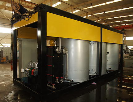 ဆီပူျဖင့္အပူေပးသည္။ အပူခ်ိန္ကုိအခ်ိန္မေရြး ထိန္းခ်ဳပ္ ႏုိင္သည္။ ေရကုိအပူေပး၍ Emulsionတုိင္ကီသုိ႔ပံ့ေပးလုိက္သည္။ ေရထည့္ေသာအခ်ိန္ထဲမွာဘဲ